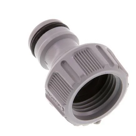 Plastic garden hose fitting with 1/2 female thread, suited for GARDENA fittings.