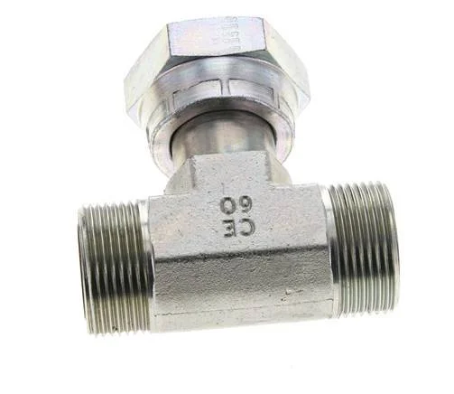 This ORFS T-screw connection is designed with two male ORFS connections and 1 female ORFS connection port in a T shape. Connection 1 has ORFS male UN 1-7/16inch-12 threads. Connection 2 has ORFS male UN 1-7/16inch-12 threads. Connection 3 has ORFS female UN 1-7/16inch-12 threads. It comes with a gasket to ensure a proper seal can be made. It is made out of steel and is galvanic/electrolytic zinc plated for surface protection. At 20 °C (68 °F), it can handle a maximum pressure of 400 bar (5802 psi).