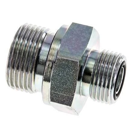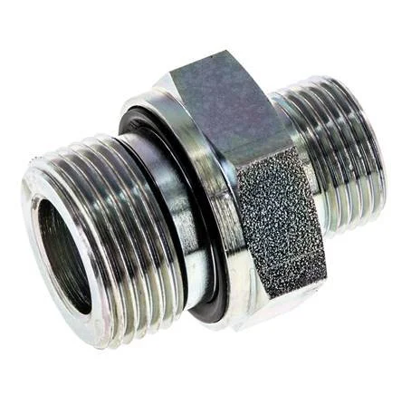 This straight ORFS screw connection is designed with a male ORFS connection point to male threads. Connection 1 has ORFS male UN 13/16inch-16 threads. Connection 2 has male G 3/4 inch threads. It comes with a gasket to ensure a proper seal can be made. It is a straight fitting. It is made out of steel and is galvanic/electrolytic zinc plated for surface protection. It has a elastomer seal. At 20 °C (68 °F), it can handle a maximum pressure of 400 bar (5802 psi).