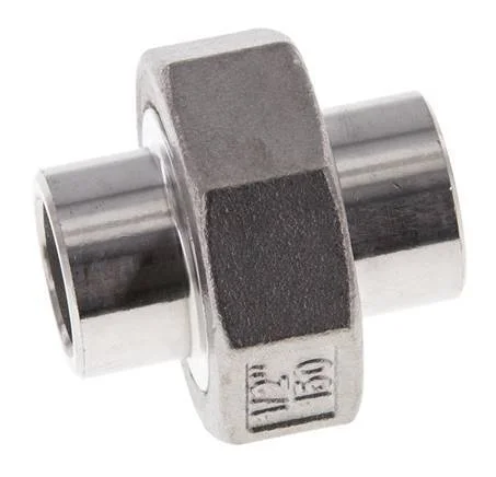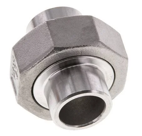 This is a union straight connector with two welding ends. It is used in low-pressure applications up to 16 bar (224.8 psi). Stainless steel 316 (1.4408) fittings have excellent corrosion resistance (better than stainless steel 304). It has a flat seal made of PTFE.