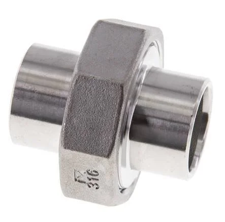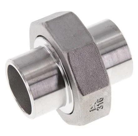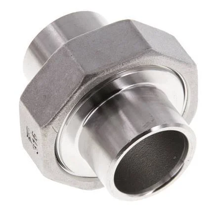This is a union straight connector with two welding ends. It is used in low-pressure applications up to 16 bar (224.8 psi). Stainless steel 316 (1.4408) fittings have excellent corrosion resistance (better than stainless steel 304). It has a flat seal made of PTFE.