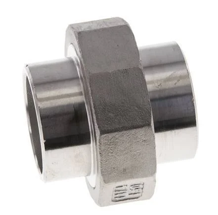 This is a union straight connector with two welding ends. It is used in low-pressure applications up to 16 bar (224.8 psi). Stainless steel 316 (1.4408) fittings have excellent corrosion resistance (better than stainless steel 304). It has a conical seal.