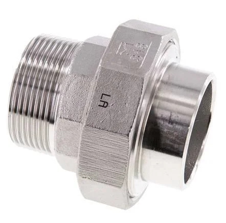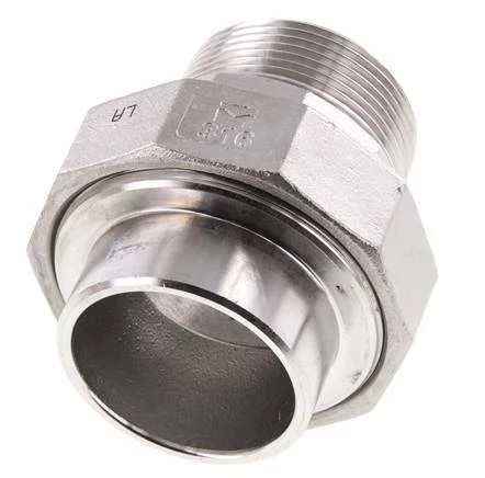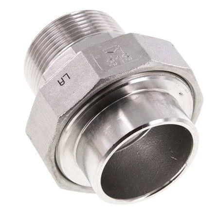 This is a union straight connector with male (R) threads and welding end. It is used in low-pressure applications up to 16 bar (224.8 psi). Stainless steel 316 (1.4408) fittings have excellent corrosion resistance (better than stainless steel 304). It has a flat seal made of PTFE.