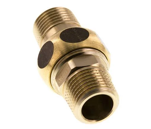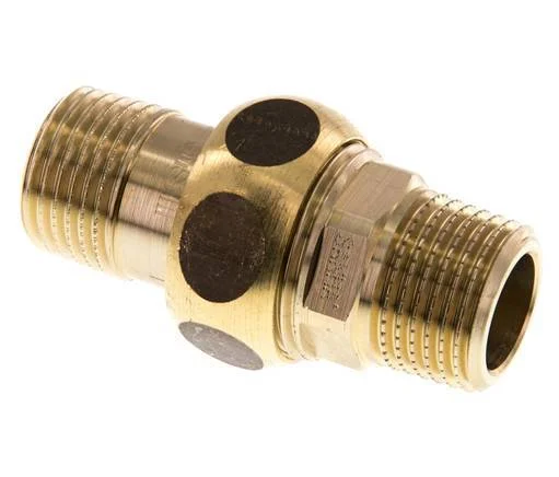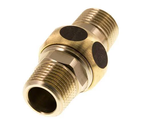 This is a union straight connector with male (R) threads. It is used in low-pressure applications up to 16 bar (224.8 psi). Brass fittings are suitable for neutral and non-corrosive media. It has a flat seal made of centellen that makes it suitable for use with water, steam, alcohol, flammable gases, hydrocarbon based oils.